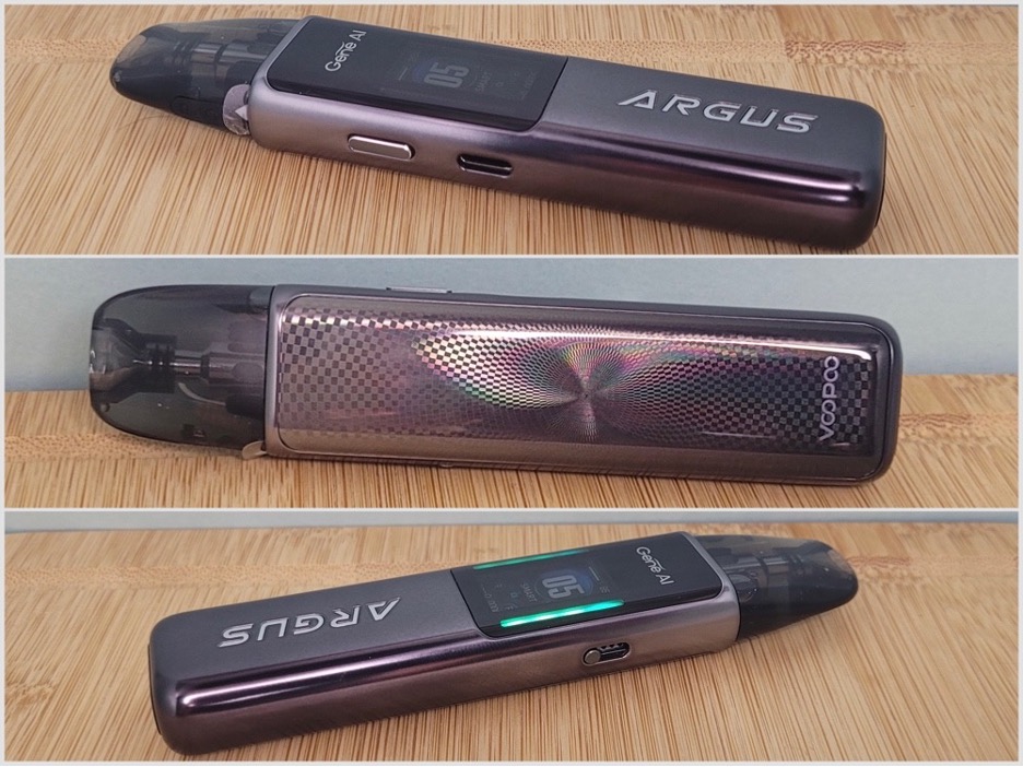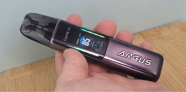 Argus G2 با بدنهای از جنس آلیاژ روی و پلیکربنات، ظاهری مدرن و در عین حال مقاوم دارد. این دستگاه با ابعاد 121 × 26.4 × 15.2 میلیمتر و وزن سبک، به راحتی در جیب یا دست جا میشود و برای استفاده روزمره و حتی سفر بسیار مناسب است. پوشش نانومتری براق آن نه تنها جلوهای لوکس به دستگاه میبخشد، بلکه حس خوشایندی را هنگام لمس منتقل میکند. وجود نوارهای LED RGB در دو طرف دستگاه نیز به جذابیت بصری آن افزوده و با هر پاف، تجربهای تعاملی و سرگرمکننده ارائه میدهد.