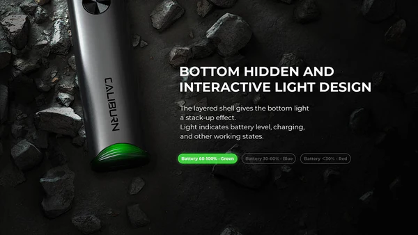 کالیبرن ای۳ با وزن سبک ۳۱ گرمی و بدنه آلومینیومی، بهراحتی در دست جای میگیرد و حمل آن در جیب یا با بند گردنی بسیار آسان است. طراحی قلمی و مینیمال این دستگاه، آن را به گزینهای شیک و کاربردی برای استفاده روزمره تبدیل کرده است.